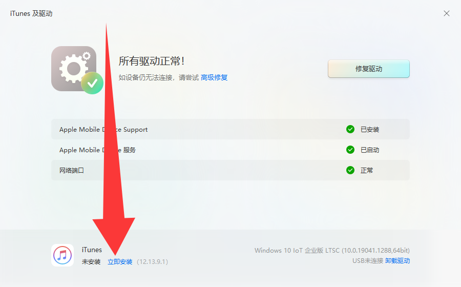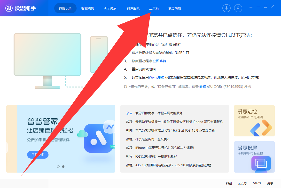4.打开爱思助手,点击“工具箱->iTunes 及驱动->安装 iTunes”来安装 iTunes。