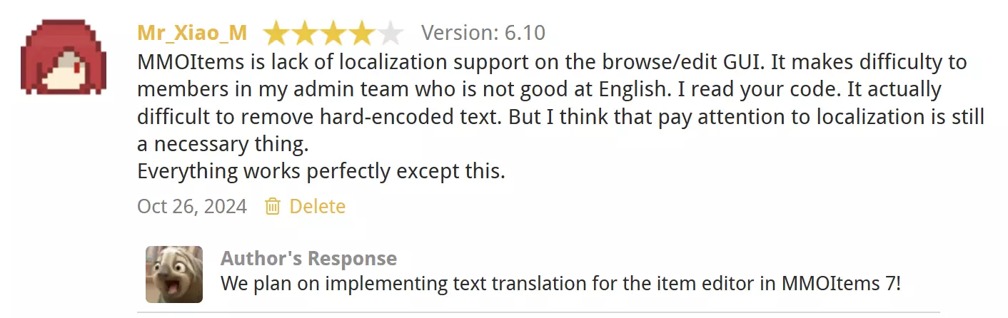 建设阶段Java插件管理类插件物品库插件MMOItemsMMOItems 信息SpigotMC https://www.spigotmc.org/resources/.39267GitLab https://gitlab.com/phoenix-dvpmt/mmoitems文档(英文) https://gitlab.com/phoenix-dvpmt/mmoitems/-/wikis/home文档(中文) https://mmoitems.magicmc.top 知名的屎山物品库插件,自带属性,技能,合成等一堆功能 有很多人用多种方式对其汉化,这是其中两个: https://www.minebbs.com/resources/.9699 https://github.com/MagicMC-Dev/MMOItems-Zh 作者在 Review 中回复,MMOItems 更新到 7.0 后将支持编辑界面的本地化。 Bstats